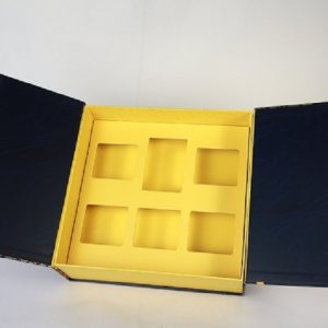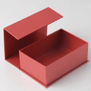 - Hộp nắp gấp được đóng lại với nhau bằng nam châm. Nắp hộp sẽ tự động đóng kín lại nhờ phần thiết kế đặc biệt với nam châm nằm bên trong giấy bồi