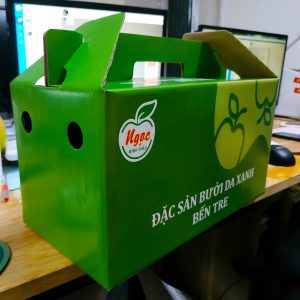 Ngoài ra, còn có thể sử dụng thùng carton 7 lớp được làm từ giấy carton 6 lớp bồi Duplex. Với định lượng giấy cao giúp tăng khả năng chịu lực cho thùng đựng bưởi khá nặng.